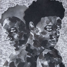 Ink, water, and stamp on canvas, 100 x 100 cm